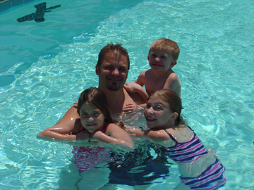 Relaxing in the pool at the hotel in North Carolina when they went to look for houses.