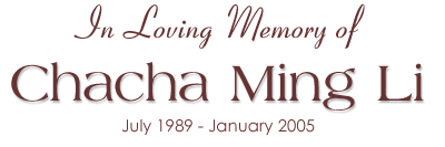 I love you chacha and will miss you terribly ! You have been my best friend for 15 years, I will NEVER forget you!