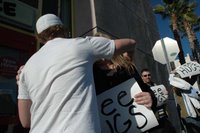 After church our Post High School to 30-Something group planned to meet at the Best Buy / Toys R Us parking lot in Victorville to give out Free Hugs. At first I was completely nervous and unsure of what kind of response we would get standing outside a store holding signs that said “Free Hugs”. But I soon found out that people were very receptive to it! It was a complete and utter blast. Within minutes the guys that were skeptical of even doing it were having the time of their lives! It was cool to see people’s reactions to us offering free hugs without any strings attached! People would look at our signs with utter confusion on their face! It was great! Originally we thought we would only be there for an hour, but we were having so much fun and had so much positive feedback that we stayed for 2 hours! It was a perfect location. I was even thanked a couple of times because the person really just needed that hug! It was such an awesome experience! People stopped and got out of their cars to get a hug! We hugged through windows, though I tried my best not to stop traffic because it was a busy location!