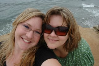 Saturday we slept in and took our time getting ready. Holly had to work so Rachel and I drove around. I went to pick up the new Harry Potter book at Barnes & Noble, we went out to lunch and went to a few more stores. We ended up at the coast and took pictures. It was fun because we had to do a bit of climbing and we had the giggles at the same time. hehe Made for a fun time!