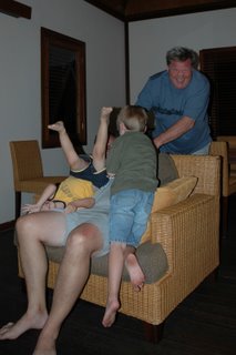 The Republic of Cappuccino and we met up with my dad and two brothers. They offered free wifi internet so this was the first time I actually touched a computer since the Friday I worked before flying out! And I wrote a bulletin on myspace and a quick email and I was done. I had no desire to be on more then that! Shawn and Brian did their email communication for their work, and my dad was writing more of his book. That evening we decided to go out to dinner at the SeaFront Restaurant which was at our resort and on the beach. Later we just played cards.