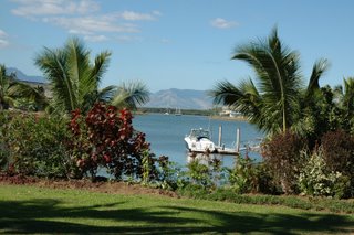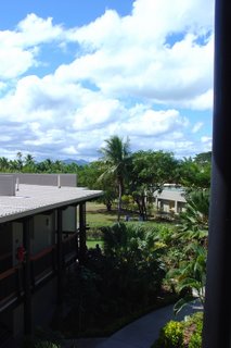 Nadi (Nandi), Fiji sometime before dawn. I walked down the outside terminal and was blown away at how beautiful the moon was! We were greeted by a group of Fijian's playing their island music. Apparently a lot of flights from LA arrive at the same time. It took a long time to get the luggage. Shawn, Brenda, Amber, Sierrah, Jackson and Gabriel were all there waiting! It was Sunday so all the shops in Nadi were closed. It was quite odd and looked a bit like a ghost town. But we did get some veggies from the small open market and I had the best cream buns ever at a store called the Bread Kitchen which was also open! I learned that "bula" (Boo lah) was how you say hello and "vinaka" (vee nah kah) was thank you. According to Google though the pronunciations I was taught are incorrect... hehe oh well. After the few stops we made our way out to the
