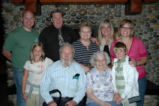 Grandparents 10/10/07 - So Wednesday night I drove down to Westlake Village with my family to have dinner with my grandparents who are visiting from Minnesota and staying with my cousin. (Sadly I never really get to see my cousin, we've never been that close.) Either way they flew my grandparents out so they could see her new baby. Well last night was the only night we could all meet up with them because the rest of their visit is planned out. My mom, brother, sister and her kids met my dad and I in Ontario and my brother and I took my car out there and the rest of the family drove in my sisters car. I haven't seen my grandparents for at least 8 years! We met at Claim Jumpers for dinner. Here are some pics from the night. I actually let my nephew, Bailey play with my camera and he got some great pics!