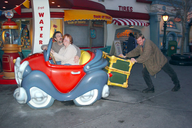 8. We had to add Sam in the back pushing the car because he was going with them to help drive.